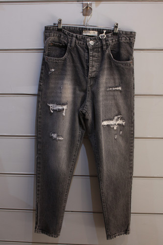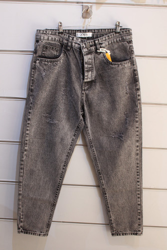 ناموجودشلوار نیم بگ ذغالی تیره جین زاپدار کد3454