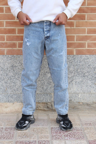ناموجودشلوار جین نیم بگ مردانه ابی سورمه ای
