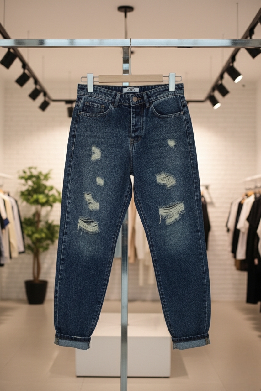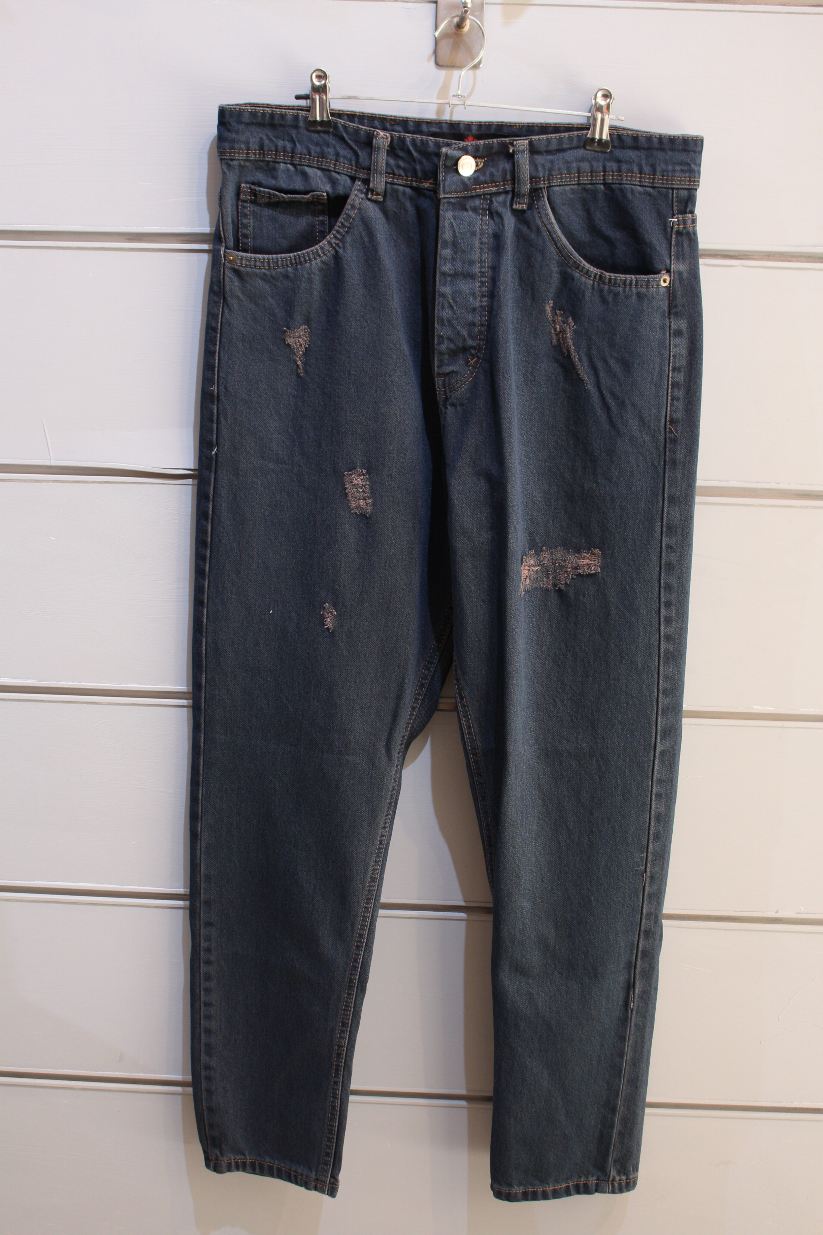 ناموجودشلوار جین نیم بگ مردانه ابی سورمه ای