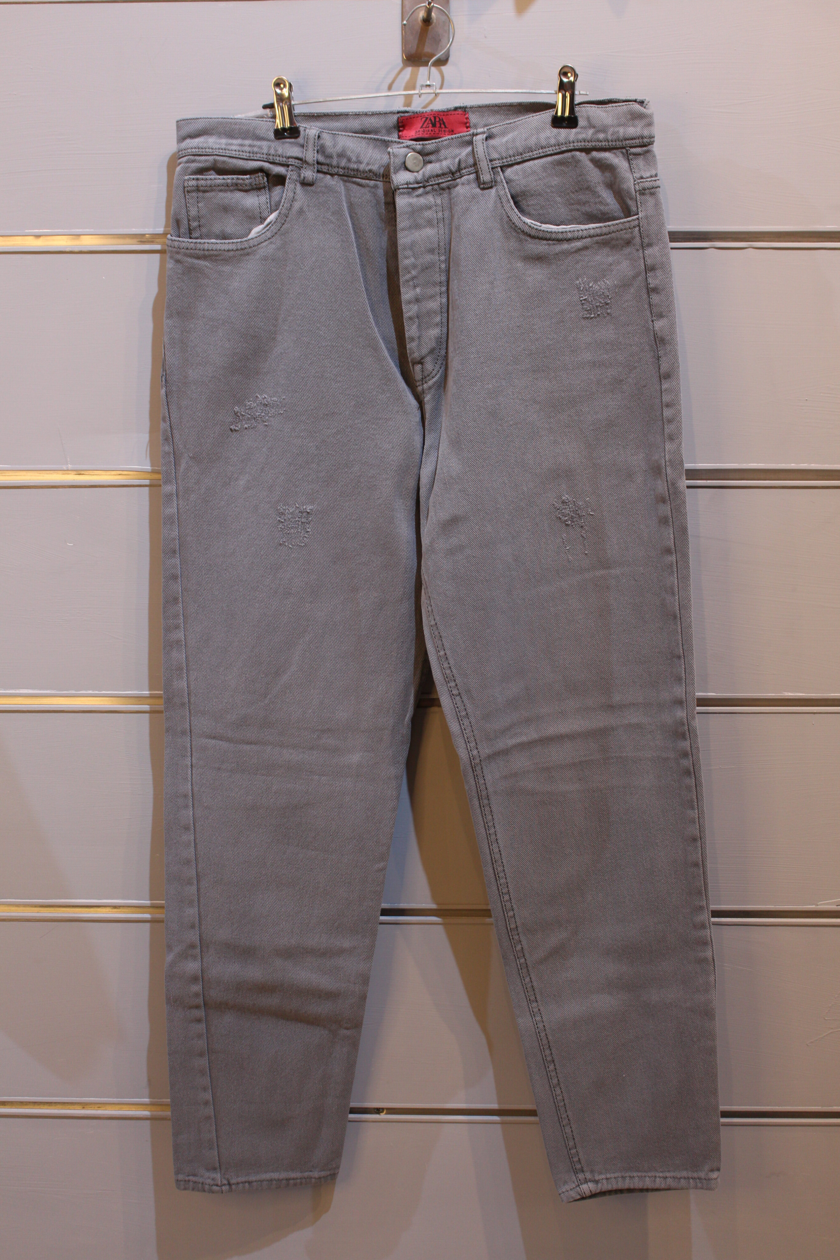 ناموجودشلوار نیم بگ ذغالی تیره جین زاپدار کد3454