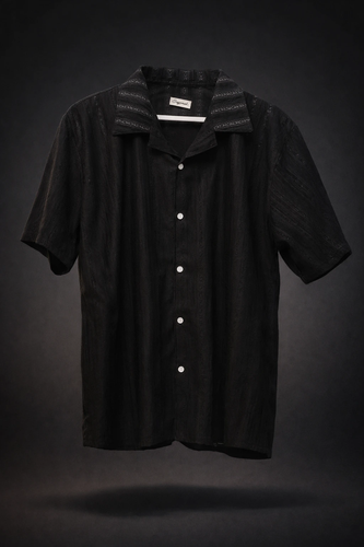 پیراهن مردانه مراکشی آستین کوتاه – رنگ مشکی عمیق
