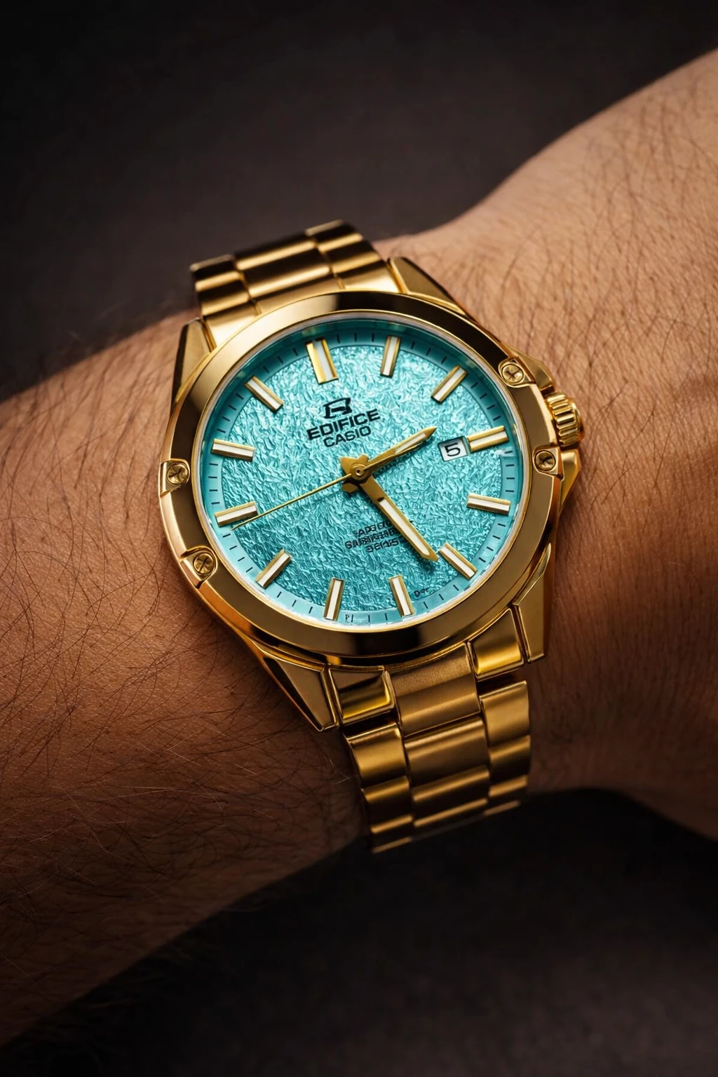ساعت کاسیو مردانه صفحه شبکه ای ابی EDIFICE - Gold Plated Teal