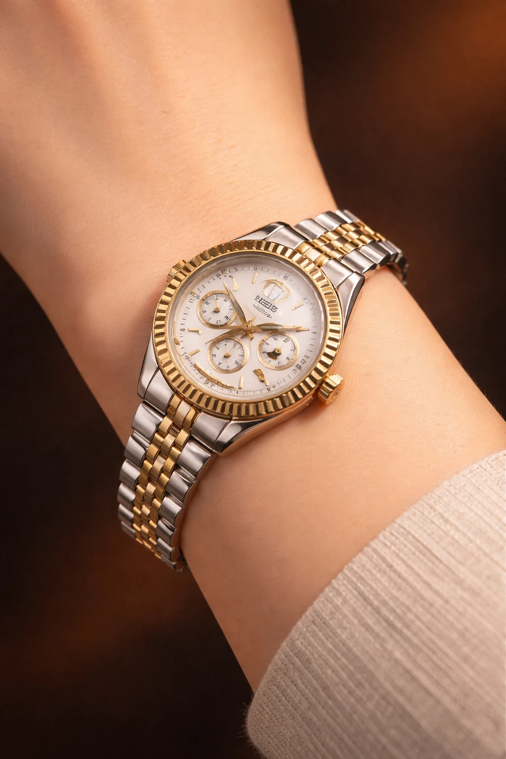 ساعت زنانه رسمی مجلسی طلایی نقره ای gold&sv edition