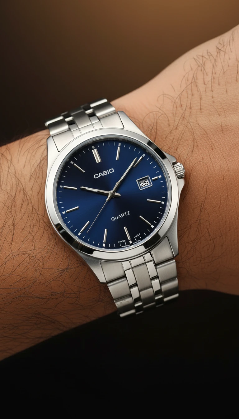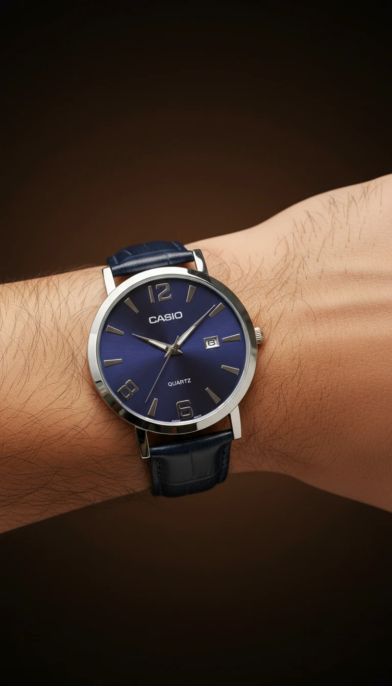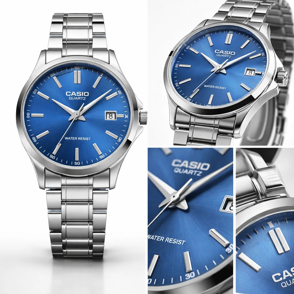 ساعت کاسیو گرد صفحه ابی مردانه فریم متوسط