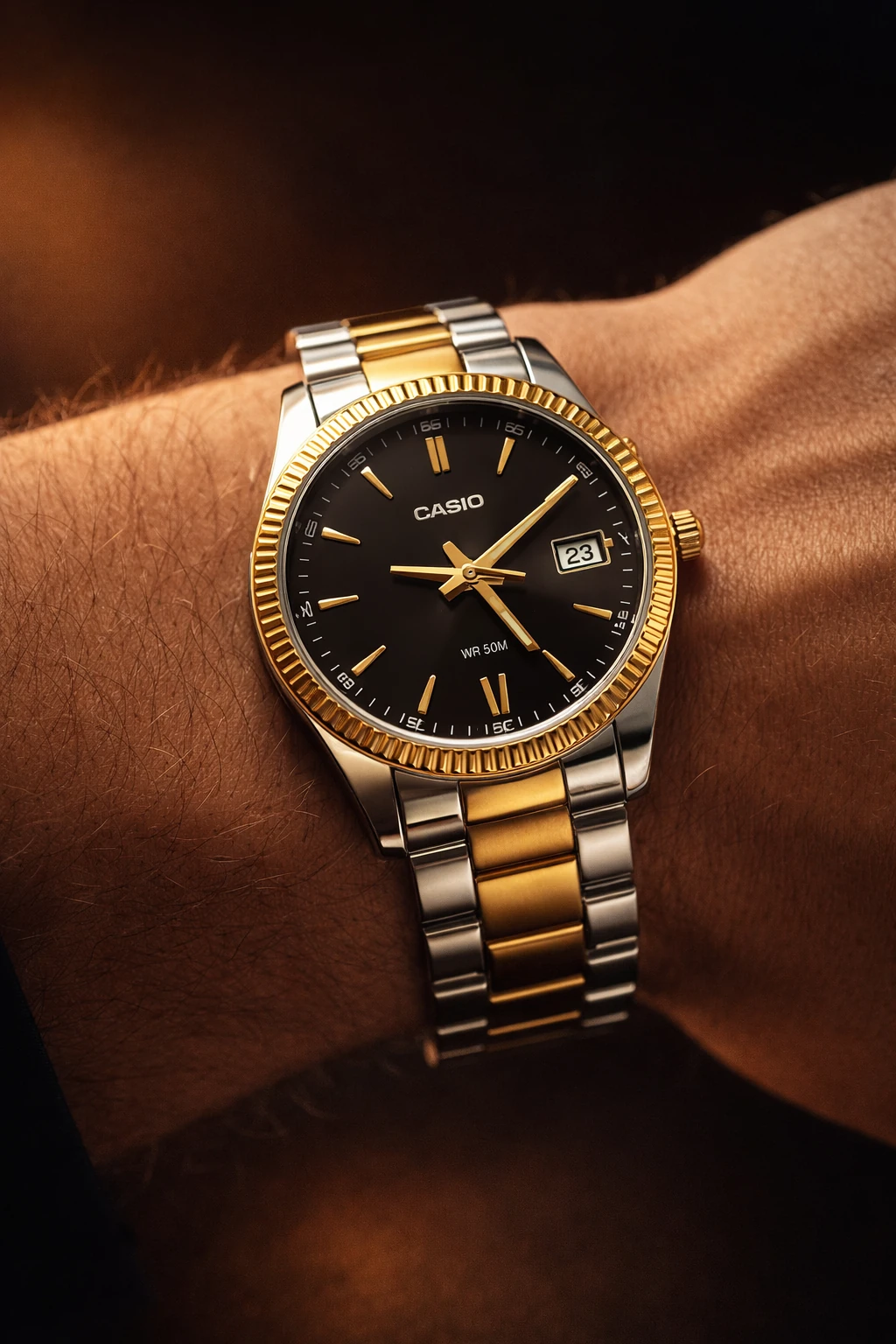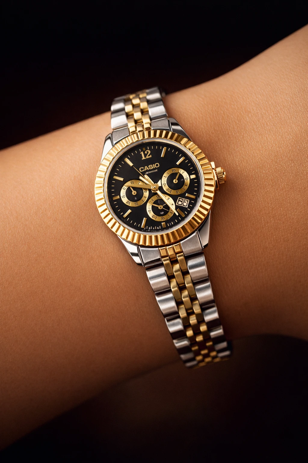 ساعت کاسیو مردانه رسمی صفحه مشکیCASIO TWO-TONE FLUTED