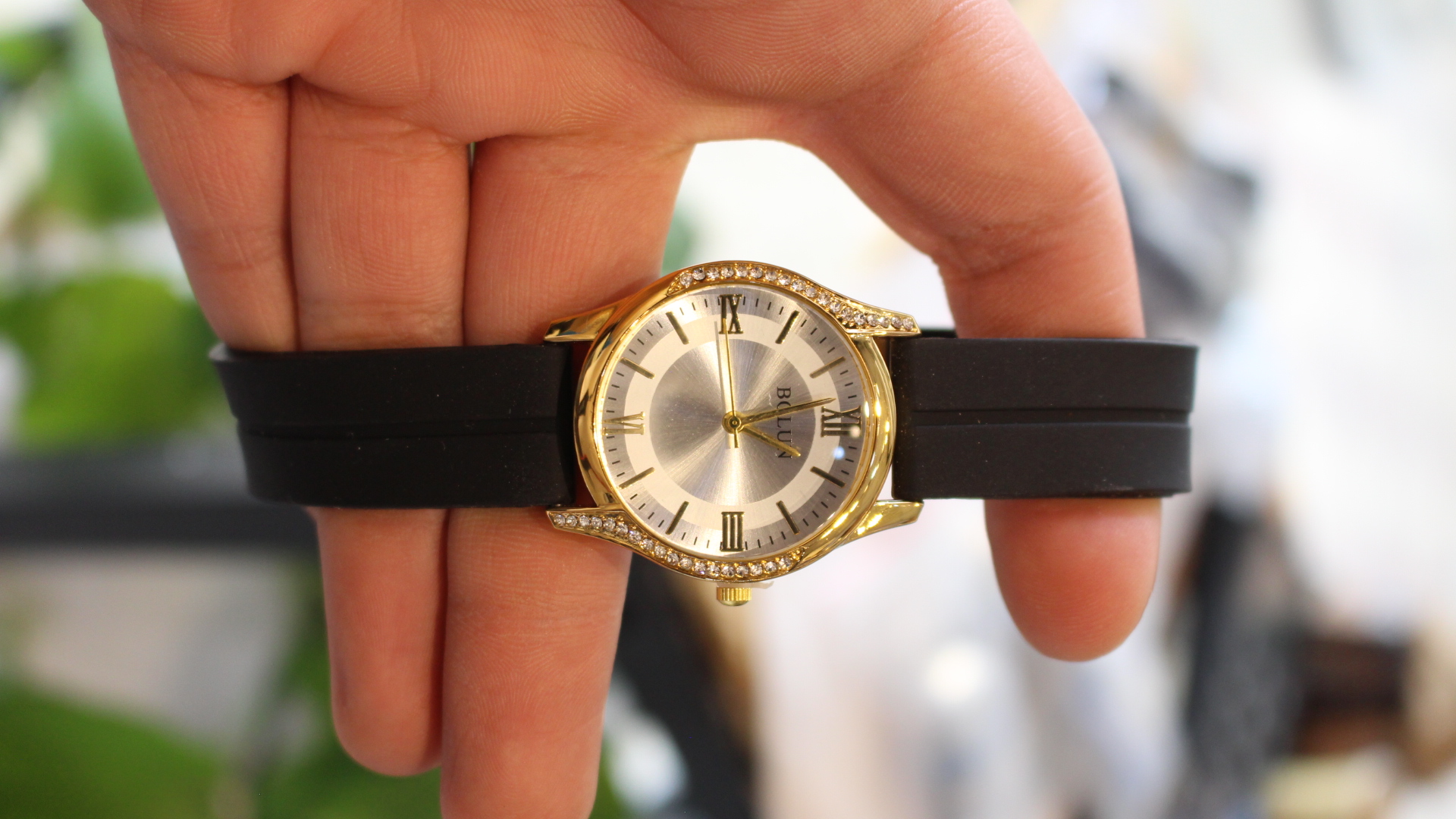 ساعت زنانه طلایی رنگ ثابت با بند سیلیکونی فقط مناسب استایل رسمی