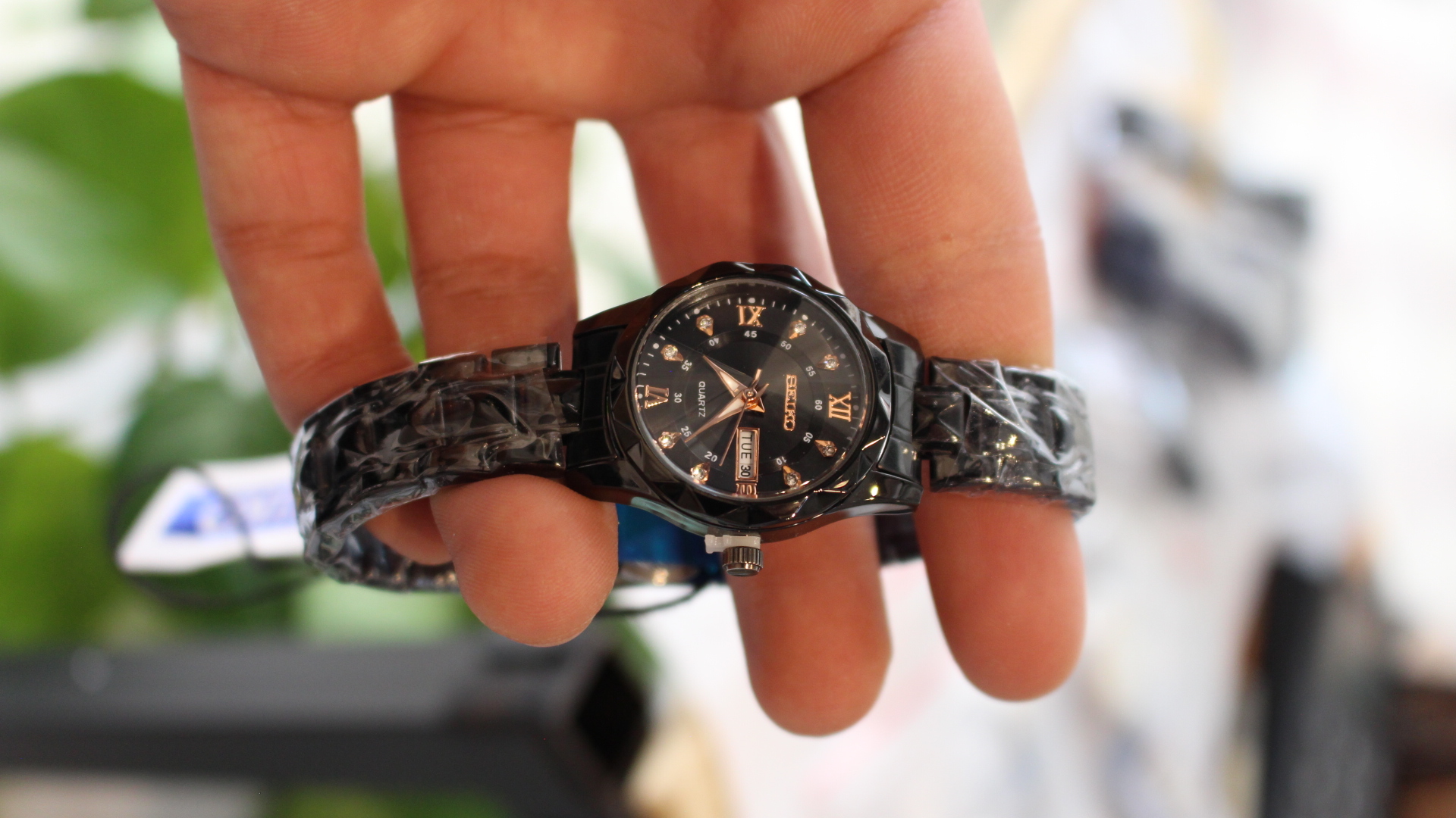 ساعت زنانه مشکی سرامیکی برند سیکو seiko ضد اب و ضد خش