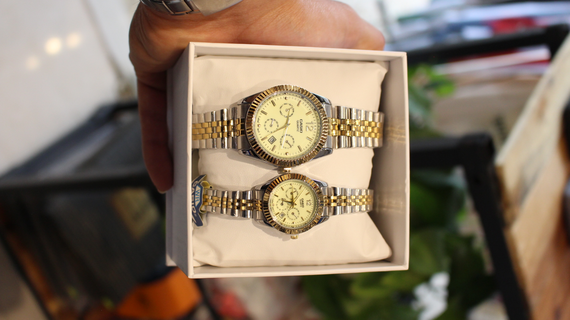 ست ساعت کاسیو ضد اب مدل Golden Prestige P‑Series Couple Watch رنگ مشکی/سفیدطلایی