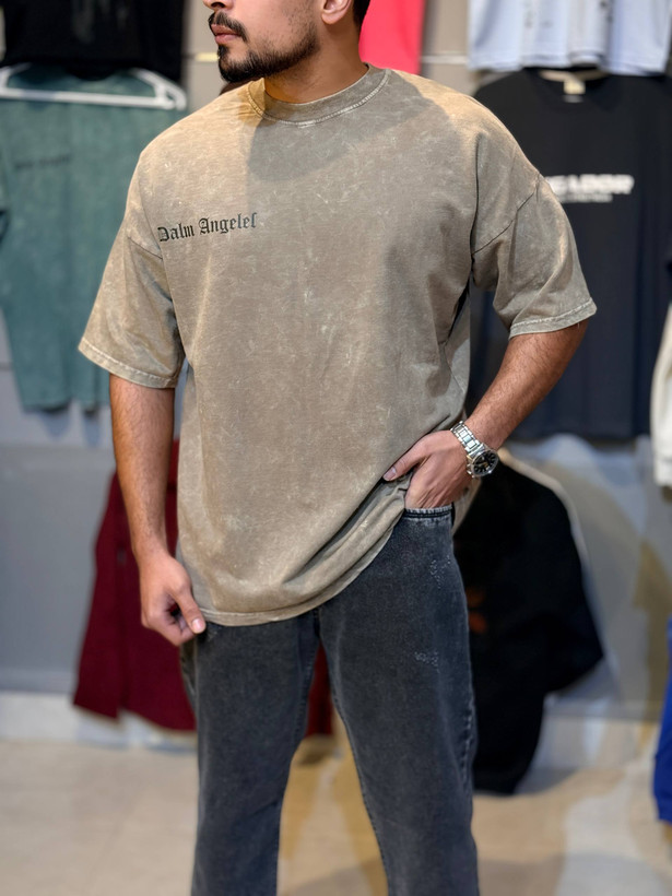 تیشرت مردانه | پنبه دو نخ | سنگشور قهوهای خاکی