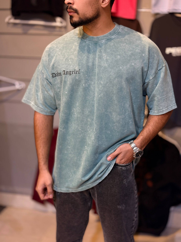 تیشرت مردانه | پنبه دو نخ | سنگشور سبز آبی