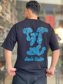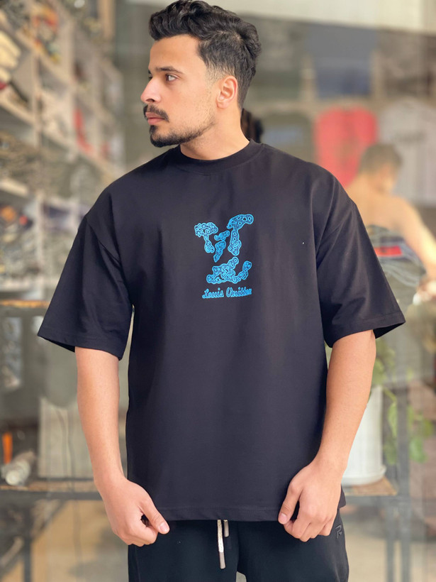 مشکی، همیشه انتخاب مطمئن. این مدل با لوگوتایپ آبی-تیل، کنتراستی دقیق و مدرن برای استایل خیابانی شیک ایجاد میکند.