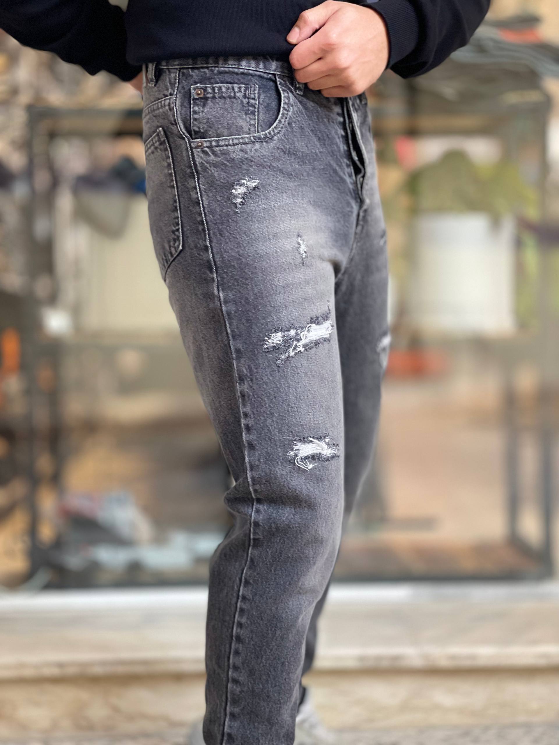 شلوار جین مردانه مام فیت ذغالی شست‌خورده