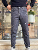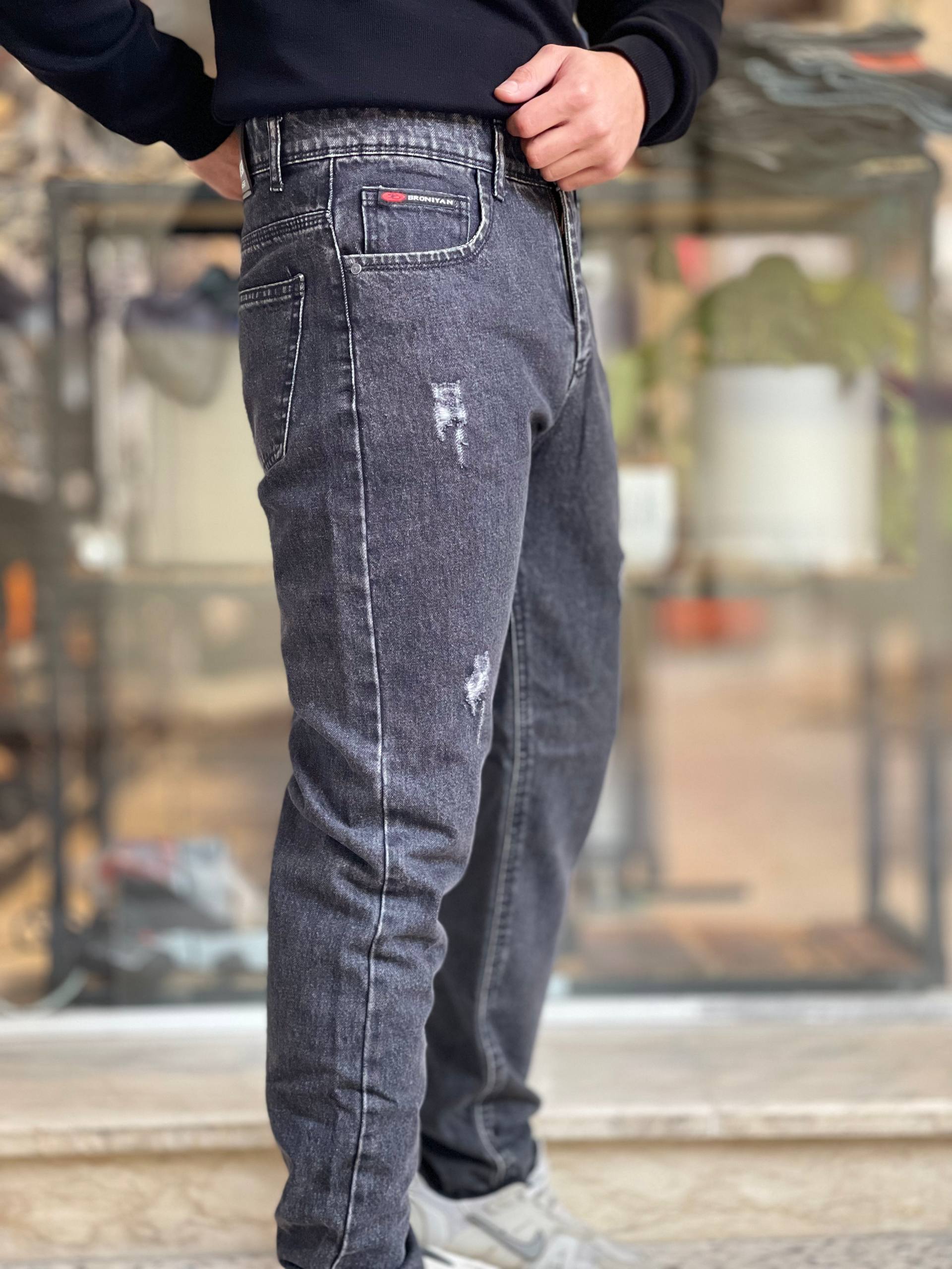 شلوار جین مردانه مام فیت ذغالی تیره مینیمال