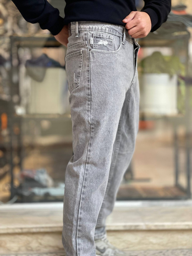 شلوار جین مردانه مام فیت طوسی روشن سنگ‌شور