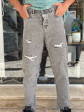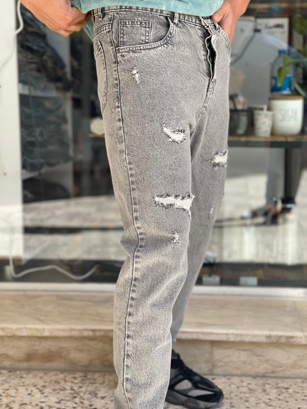 شلوار جین مردانه مام فیت طوسی روشن زاپ‌درشت