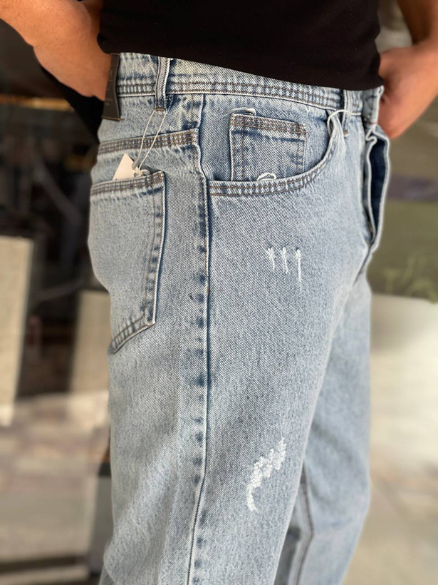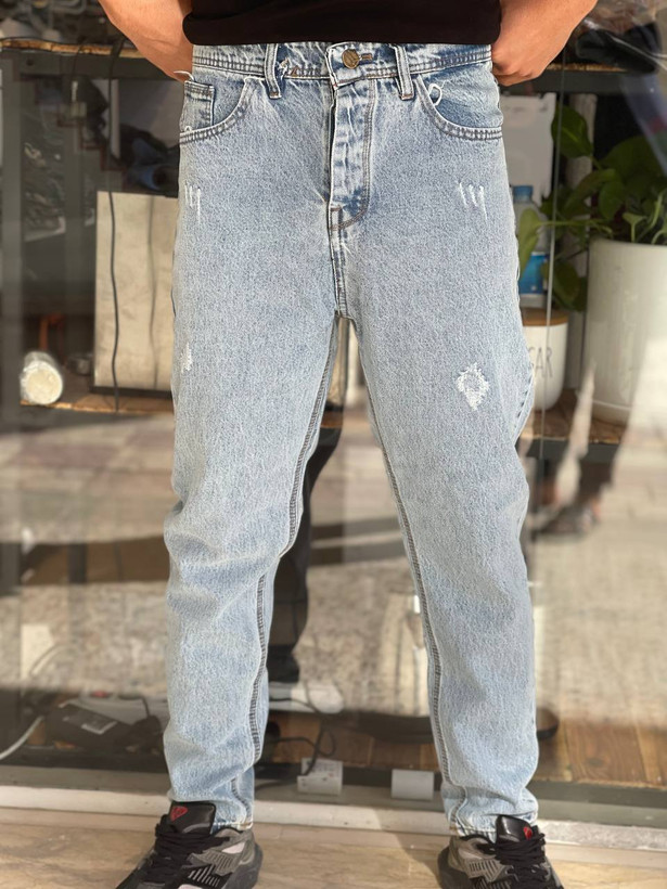 شلوار جین مردانه مام فیت آبی یخی روشن