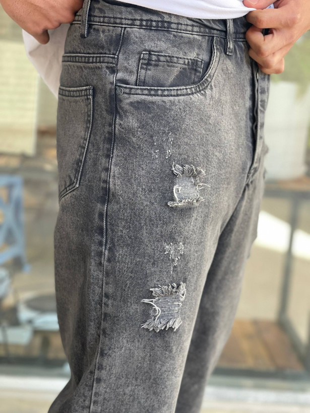 شلوار جین مردانه مام فیت ذغالی زاپدار