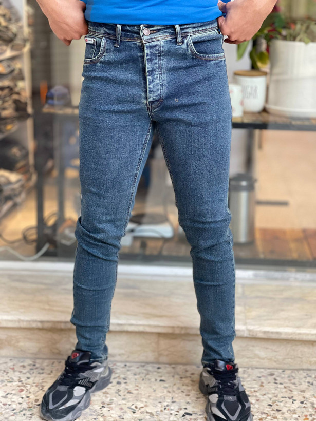 شلوار جین مردانه اسکینی آبی کلاسیک شستخورده