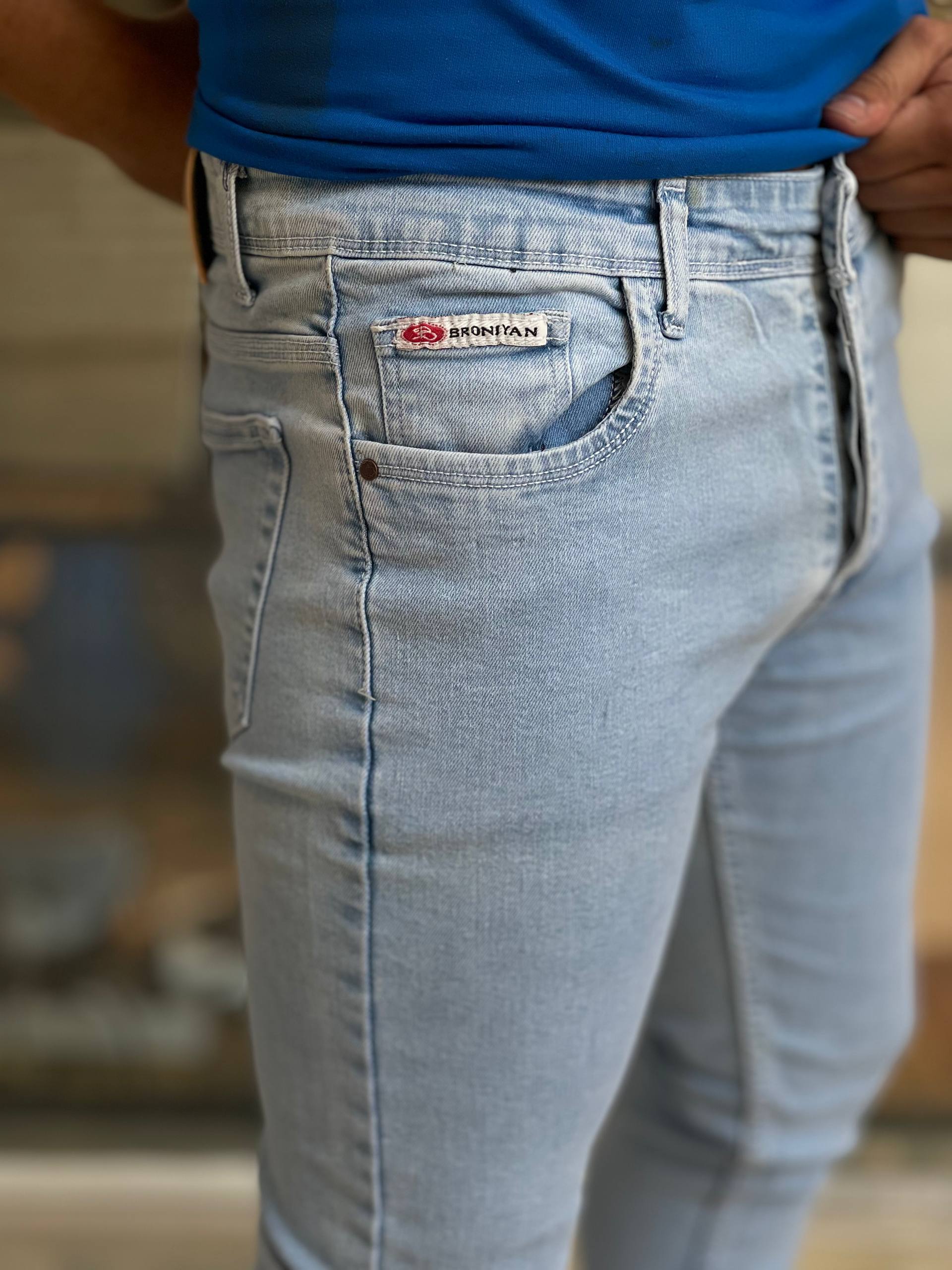 شلوار جین مردانه اسکینی آبی یخی روشن