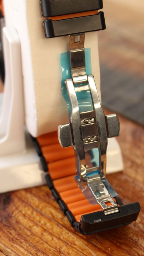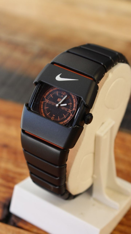 **طراحی صنعتی و مدرن** - مدل آنالوگ با قاب مستطیلی یکپارچه و تم رنگی مشکی و نارنجی تیره (Burnt Orange).