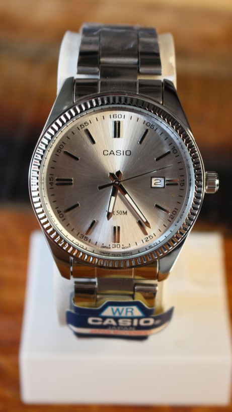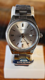 **ظاهر لوکس، قیمت اقتصادی** - یک مدل کلاسیک Casio با قاب شیاردار (Fluted Bezel) و صفحه نقرهای Sunburst، انتخابی عالی برای استایل رسمی و روزمره.