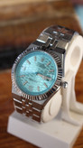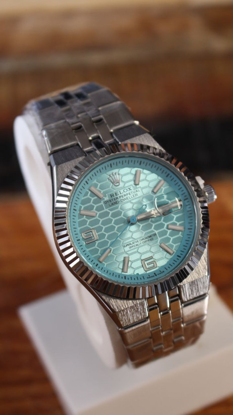یک ساعت متمایز که سنت قاب شیاردار و بند جوبیلی را با صفحه فیروزهای لانهزنبوری خاص در هم میآمیزد. انتخابی عالی برای کسانی که میخواهند با حفظ حس لوکس بودن، متفاوت به نظر برسند.