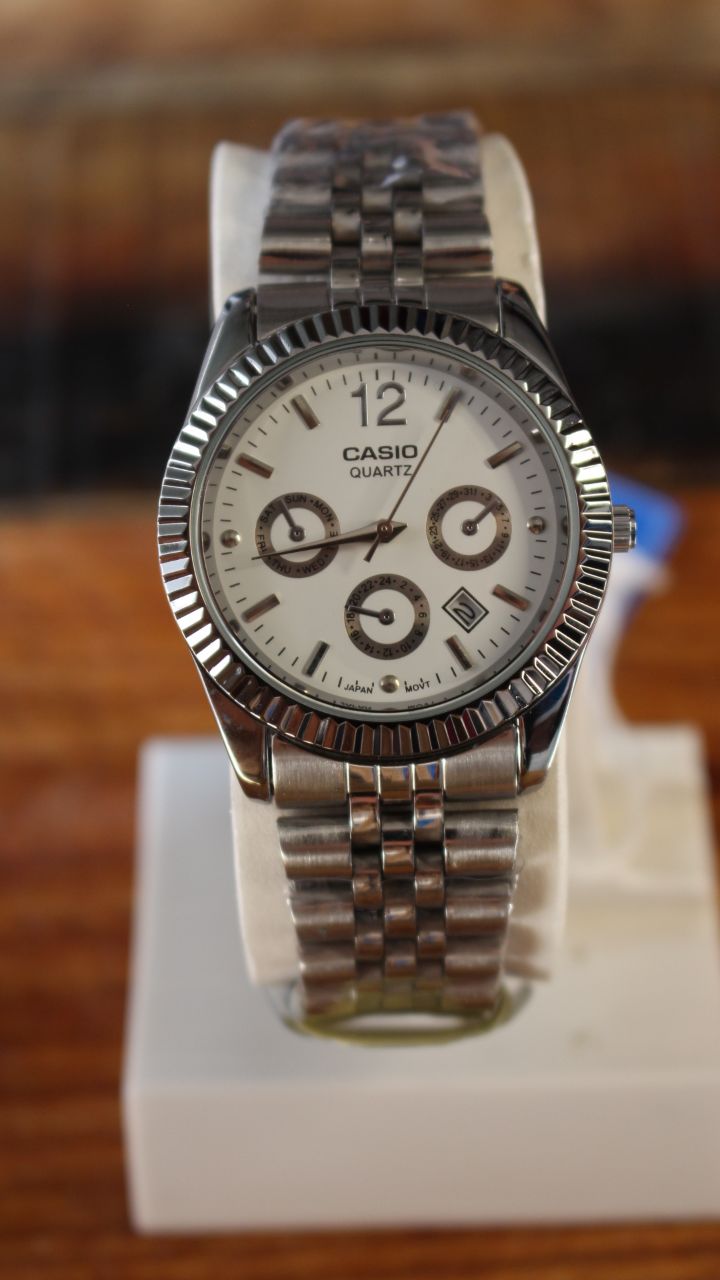 ساعت کاسیو مردانه سه موتور صفحه نقره ایCasio Quartz Classic - Multi-Function
