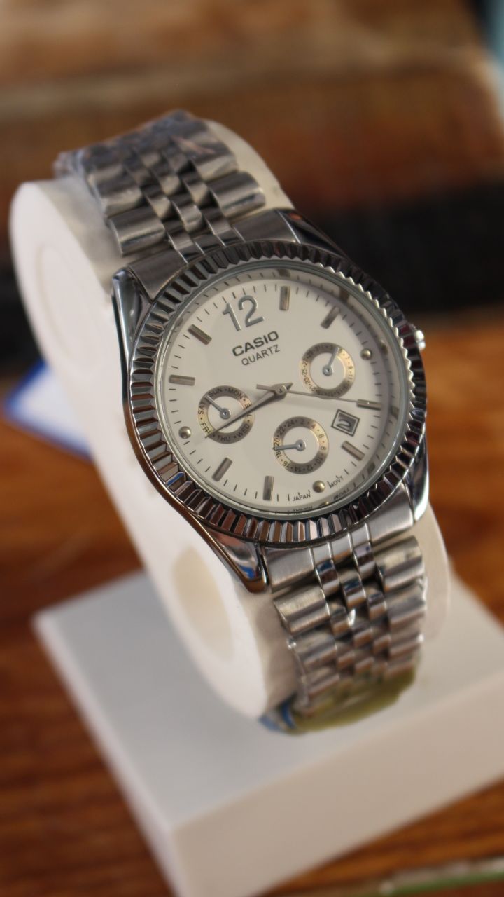 این ساعت کوارتز کاسیو با صفحهی چندمنظوره و طراحی کلاسیک (قاب شیاردار و بند Jubilee)، تمامی نیازهای روزمره شما را با سبکی رسمی برآورده میکند. یک همراه مطمئن برای محیطهای کاری و رسمی.