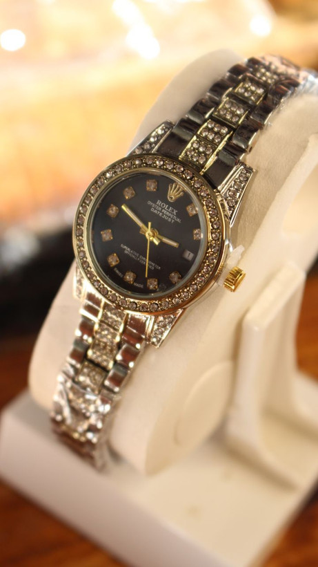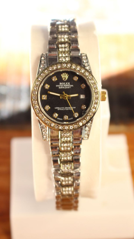 ساعت رولکس زنانه صفحه مشکی فول نگین مجلسی