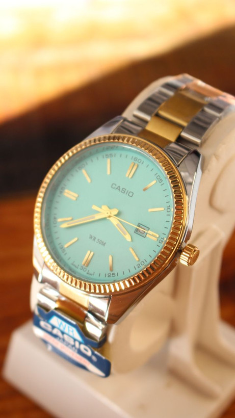 ساعت مردانه کاسیو صفحه فیروزه ای CASIO TIFFANY FLUTED V26