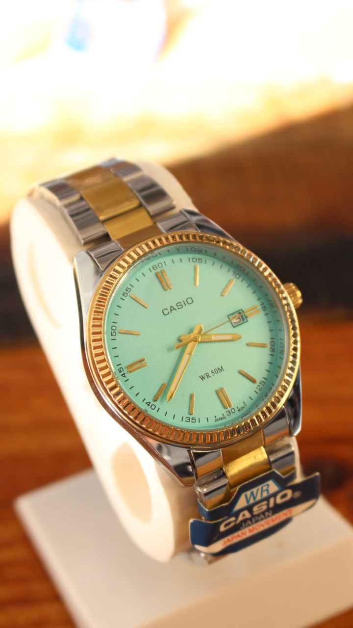 ساعت مردانه کاسیو صفحه فیروزه ای CASIO TIFFANY FLUTED V26