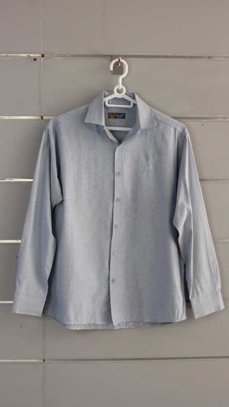 پیراهن نخی پارچه ملانژ پولو رنگ ابی اسمانی
