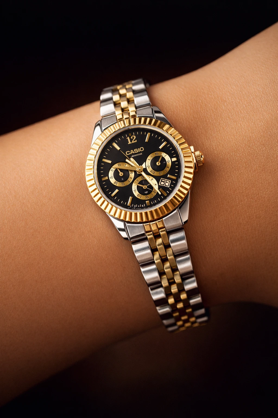ساعت زنانه کاسیو سه موتوره صفحه مشکی رسمی مجلسی