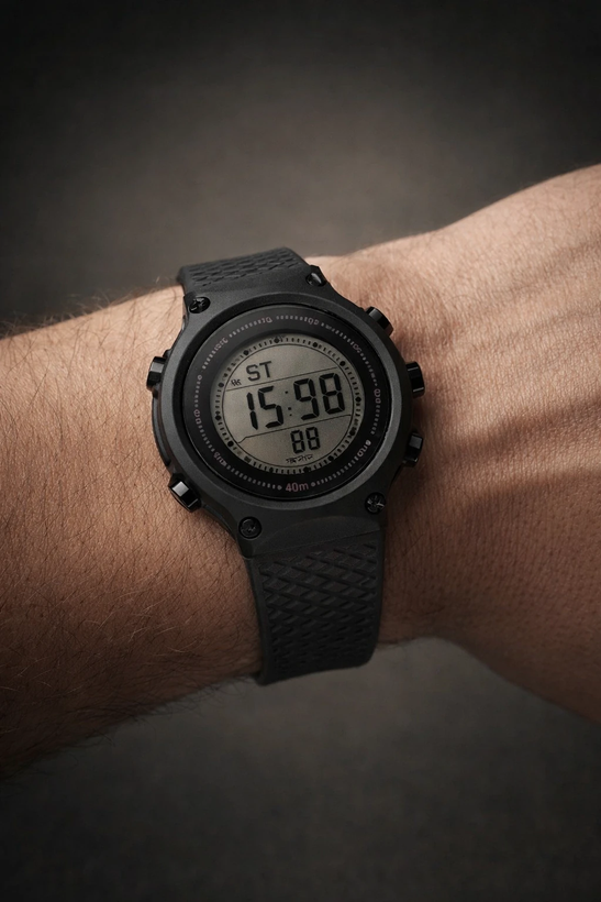لمس بدنه V36 حسی از **تراکم و صلابت** را منتقل میکند؛ سنگینی کنترلشدهای که وزن واقعی مواد اولیه را القا میکند. دکمههای جانبی با عمق و بازخورد لمسی مشخصی طراحی شدهاند، به طوری که کاربر بدون نگاه کردن، بتواند وضعیت عملکردی ساعت را درک کند. بافت بند، هنگام پوشیدن، احساس **تثبیت کامل** روی مچ ایجاد میکند؛ چسبندگی بالا مانع از چرخش ناخواسته ساعت شده و موقعیت نمایشگر را همواره در بهترین زاویه نگه میدارد.