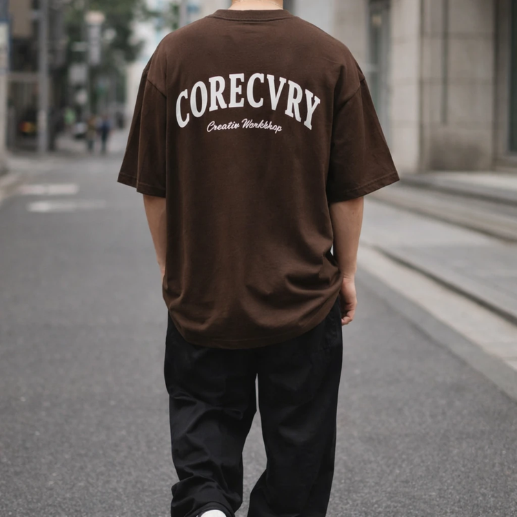 تی شرت مردانه باکسی گرم بالا پارچه ماکان مدل CORECVRY رنگ قهوه ای موکا
