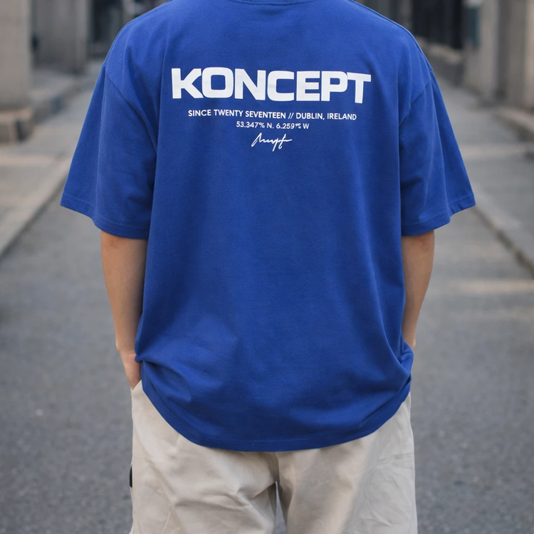 تی شرت مردانه باکسی گرم بالا پارچه ماکان مدل KONCEPT رنگ ابی