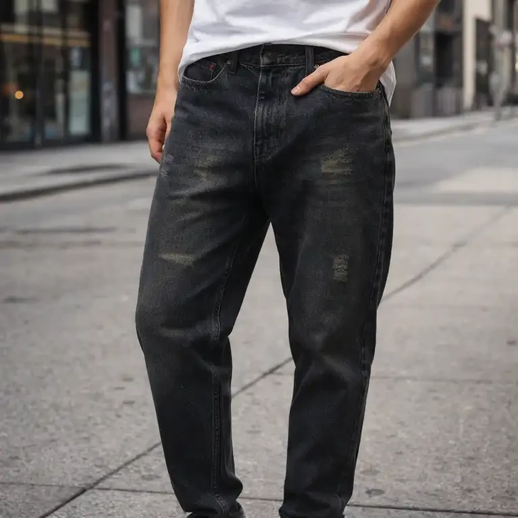 شلوار مام فیت مردانه مدل elite momfits yelow wash رنگ گازویلی تیره ترکیب ابی زرد تیره