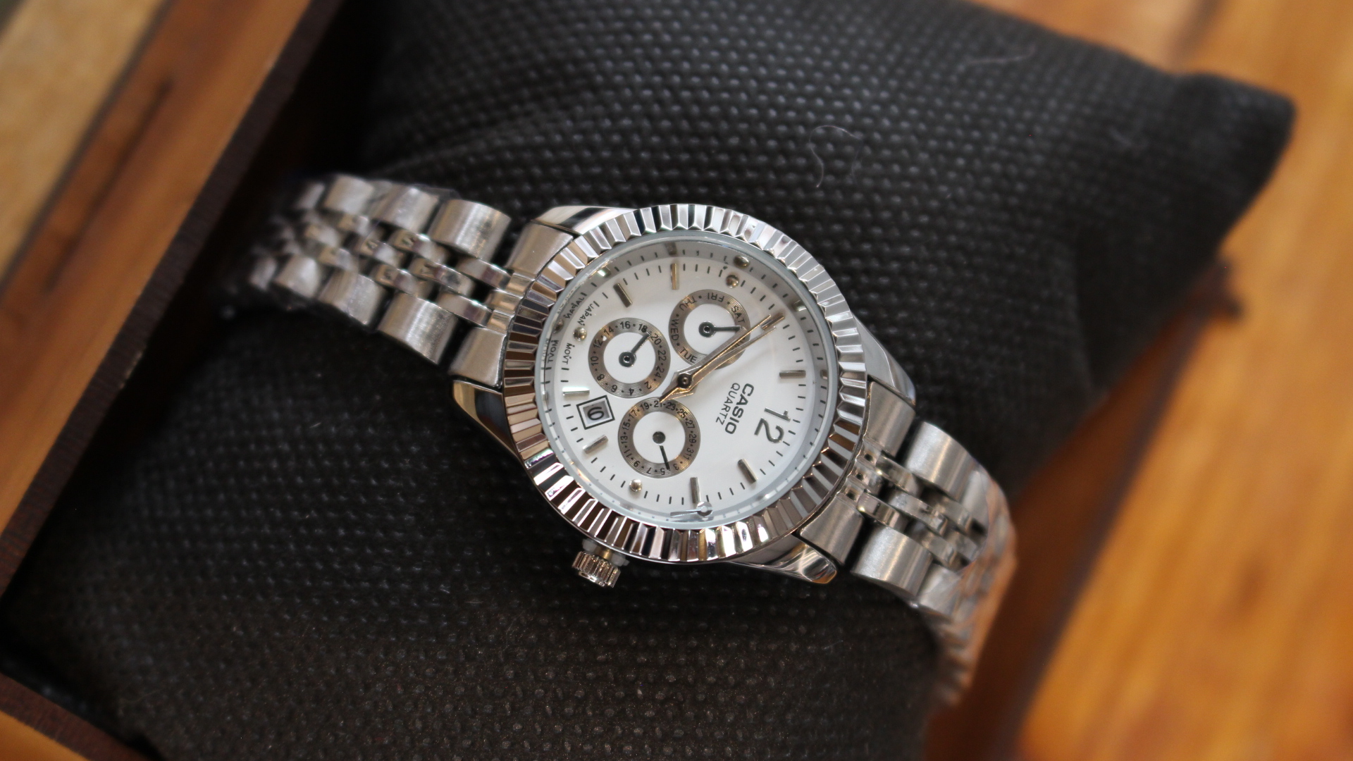 ساعت زنانه کاسیو رسمی مجلسی مدل white limited casio رنگ نقره ای