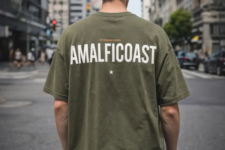 تی شرت مردانه باکسی پشت چاپ گرم بالا ماکان مدل amalficoast رنگ سبز یشمی