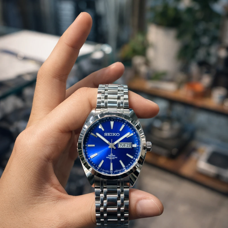 صفحه آبی الکتریکی با افکت Sunburst در این مدل، هویت ساعت را کاملاً متمایز میکند. ترکیب آن با بند استیل کلاسیک و نمایشگر روز/تاریخ، یک نسخه رسمی و در عین حال چشمگیر را ارائه میدهد. این ساختار برای استایلهای شهری، کاری و نیمهمجلس کاملاً مناسب است.