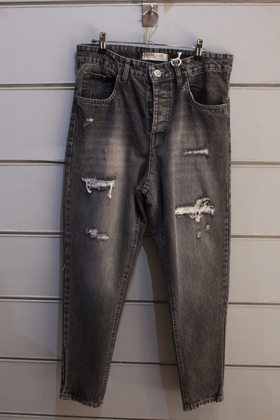 شلوار مام فیت پارچه کویر درجه یک ذغالی سایه دار زاپ دار